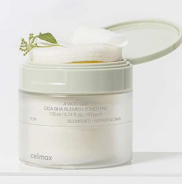 Los pads con BHA y Cica como los CELIMAX Ji Woo Gae Cica BHA Blemish Toner Pads facilitan la aplicación uniforme de activos exfoliantes mientras calman la piel, ideal para mantener los poros limpios sin complicaciones.