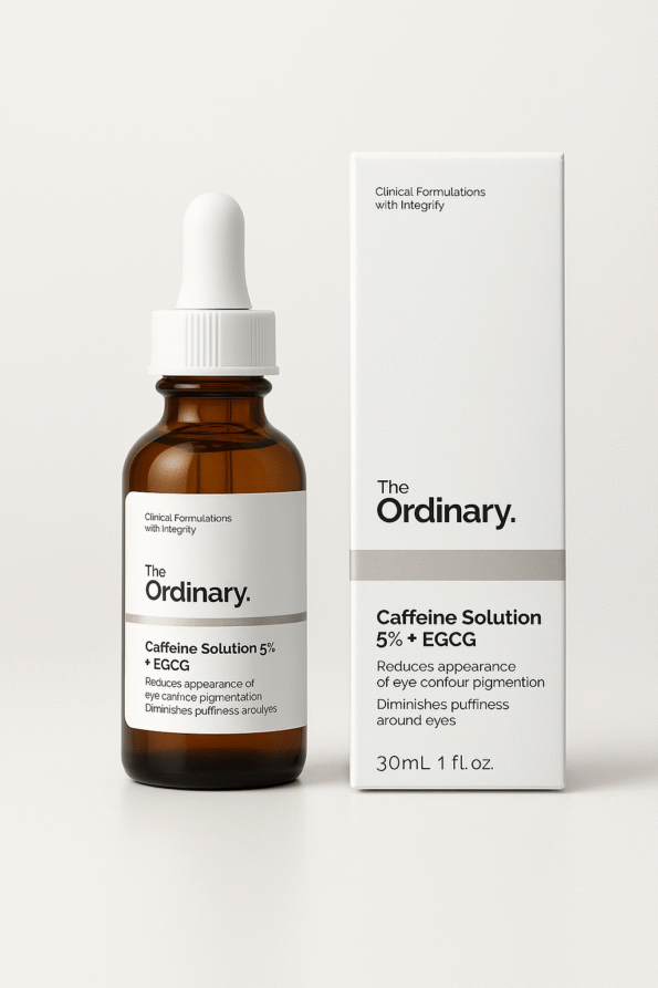 La cafeína en The Ordinary actúa como vasoconstrictor que mejora la circulación sanguínea, reduce la inflamación y la retención de líquidos bajo los ojos, mientras el EGCG aporta protección antioxidante adicional.