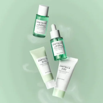 Set de 5 productos en formato mini con centella asiática: limpieza, tonificación, suero y crema en una rutina calmante y ligera para todo tipo de piel. Ideal para viaje o prueba.