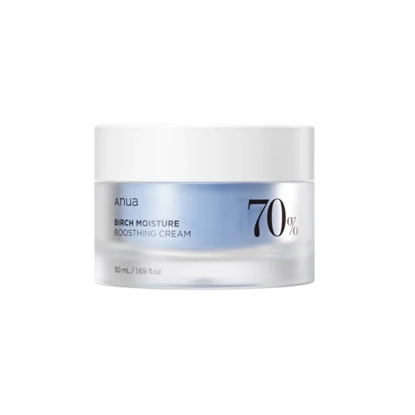 La crema hidratante Birch Moisture Boosting Cream de Anua aprovecha el poder fortalecedor de la piel del 70 % del agua de abedul blanco japonés y del complejo ABC (alantoína, betaína, extracto de pepino) para mantener el equilibrio del pH de la piel y retener la humedad,hidrata profundamente y fortalece la barrera protectora de la piel, Calma la piel sensible.