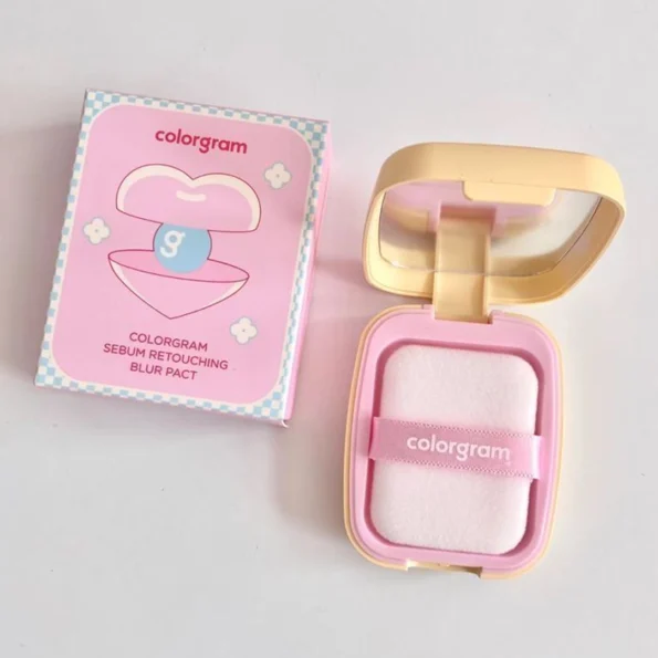 El Colorgram Sebum Retouching Blur Pact es un polvo compacto coreano diseñado para controlar el sebo, difuminar poros y dejar un acabado suave, natural y aterciopelado. Su fórmula ultraligera y sin color visible se adapta a cualquier tono de piel sin alterar el maquillaje, ideal para retoques durante el día.