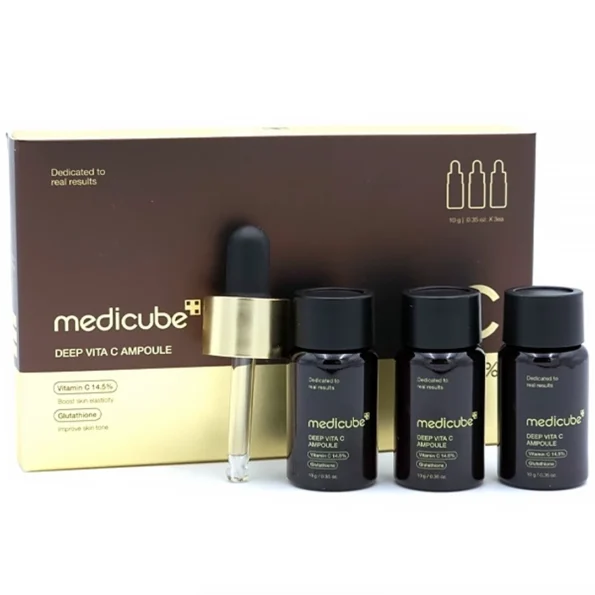 El serum Medicube Deep Vita C Ampoule es un tratamiento coreano de alta potencia formulado con 14,5 % de vitamina C pura (ácido ascórbico). Diseñado para iluminar la piel, reducir manchas oscuras y mejorar la textura general del rostro, su fórmula actúa directamente sobre zonas apagadas, pigmentadas o con falta de elasticidad.