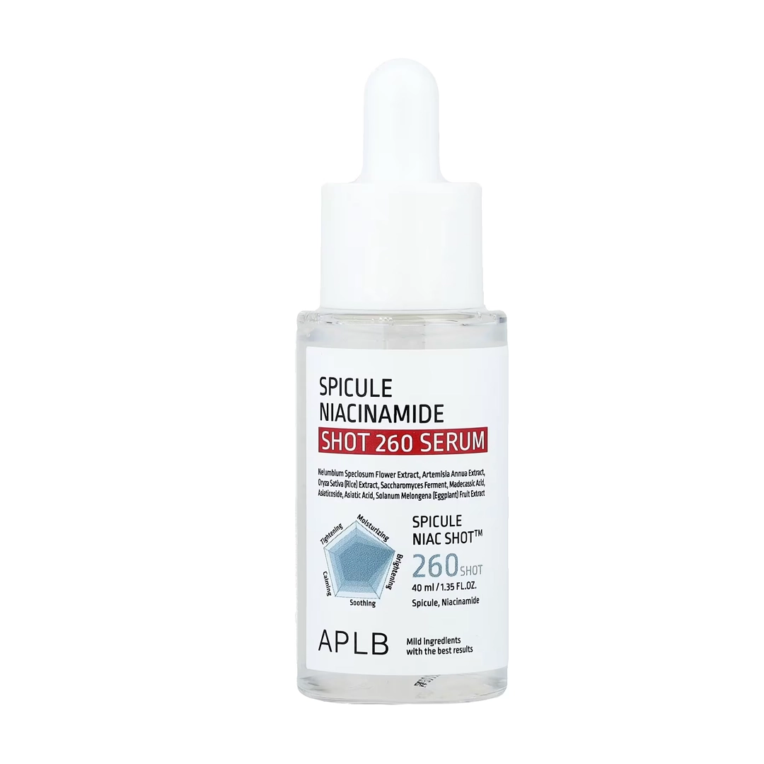 Si buscas mejorar la apariencia del tono irregular y la textura visible, APLB – Spicule Niacinamide Shot 260 Serum combina niacinamida con tecnología de micro-spículas para optimizar la absorción y potenciar el rendimiento de tu rutina. Su enfoque está en equilibrar la piel y favorecer un aspecto más uniforme y refinado.