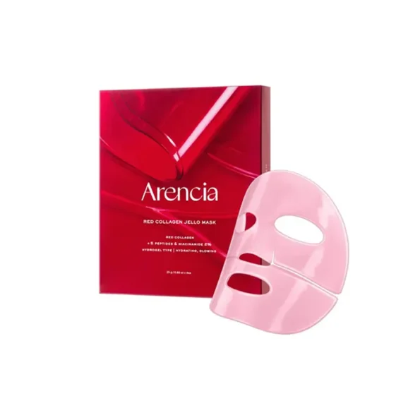 a Arencia Red Collagen Jello Mask es una mascarilla coreana en formato gelatina que ofrece un tratamiento intensivo de firmeza, hidratación y luminosidad. Su fórmula combina colágeno, niacinamida y un complejo de 5 péptidos para revitalizar la piel apagada, mejorar la elasticidad y suavizar las primeras líneas de expresión.