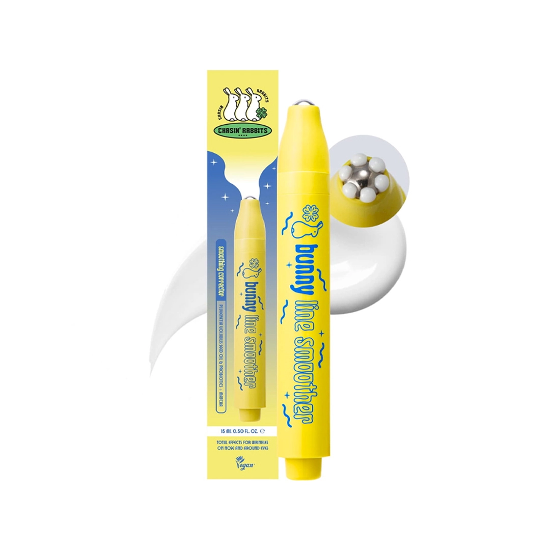 El Chasin’ Rabbits Bunny Line Smoother está diseñado como un tratamiento localizado para zonas donde las líneas de expresión tienden a marcarse. Su formato con dispensador de precisión permite trabajar áreas específicas como el contorno de ojos, el puente de la nariz o alrededor de la boca, optimizando la aplicación sin exceso de producto.