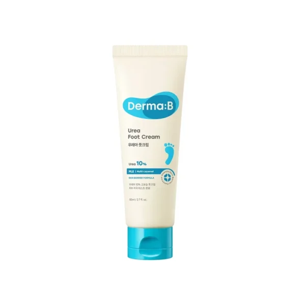 DERMA:B Urea Foot Cream es una crema para pies con 10% de urea diseñada para hidratar la piel seca y ayudar a suavizar zonas ásperas como talones y plantas.