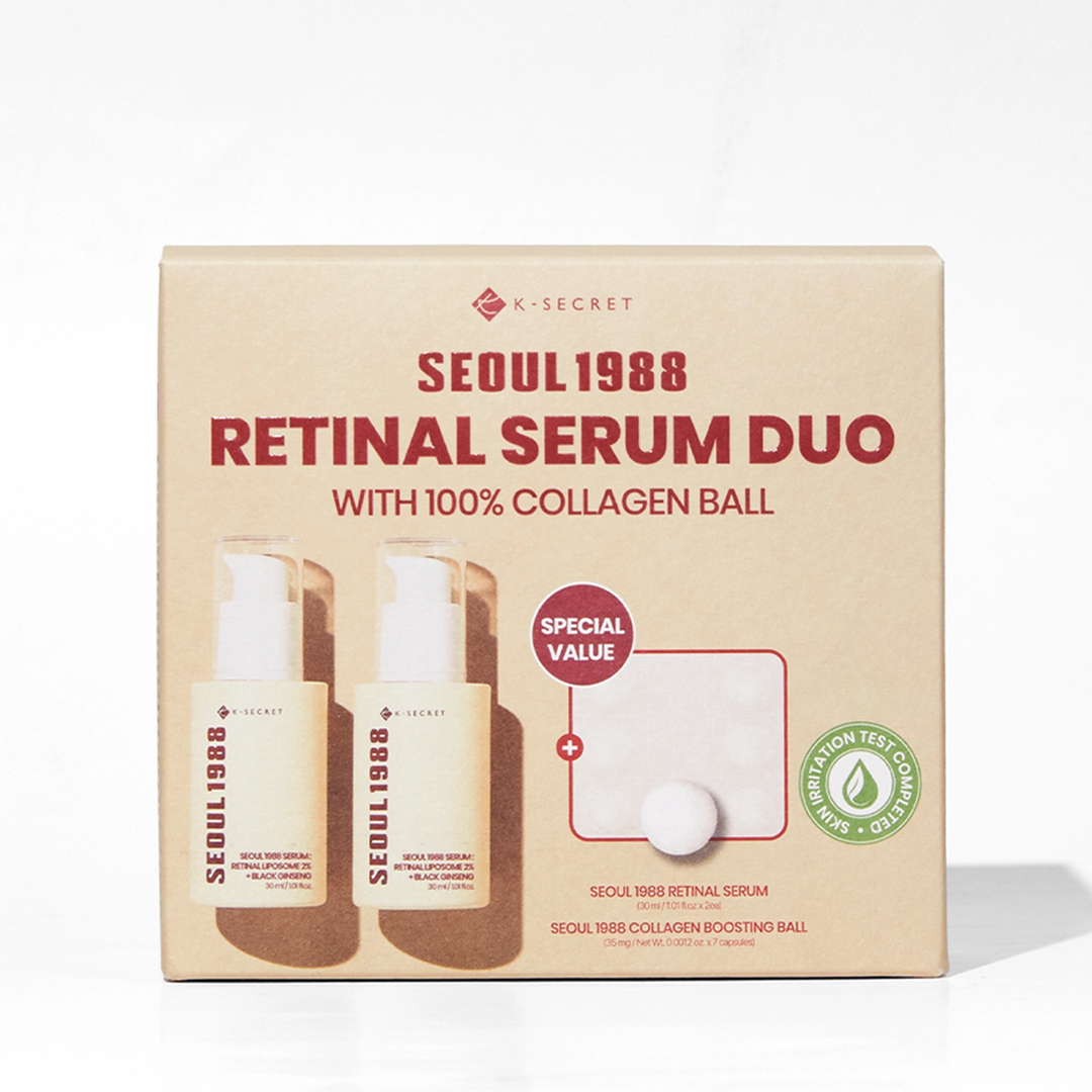 El K‑SECRET Retinal Black Ginseng Serum Double Set es mucho más que un dúo de sueros: es un tratamiento de renovación intensiva que combina ciencia coreana y tradición herbal en un formato único. Este set incluye 2 sueros concentrados con retinal y ginseng negro fermentado, más 7 cápsulas de colágeno liofilizado que se activan al mezclarse con el sérum, potenciando al máximo la elasticidad, firmeza y nutrición de la piel.