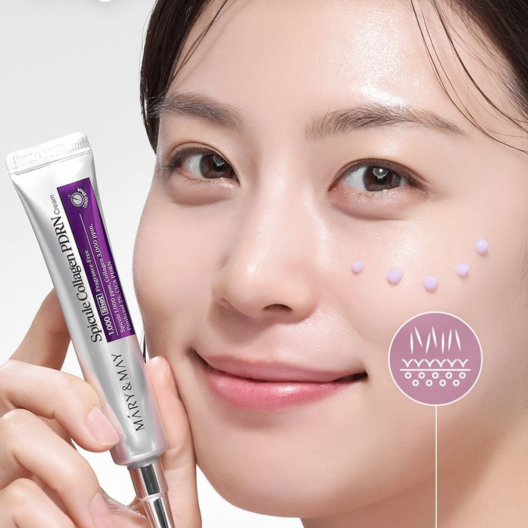 Mary&May – Spicule Collagen PDRN Cream es una crema facial coreana intensiva diseñada para mejorar la firmeza, elasticidad y textura de la piel con una fórmula avanzada que combina spículas, colágeno y PDRN. Este trío actúa en sinergia para revitalizar la piel, ayudando a que luzca más tersa, luminosa y con efecto volumen natural .