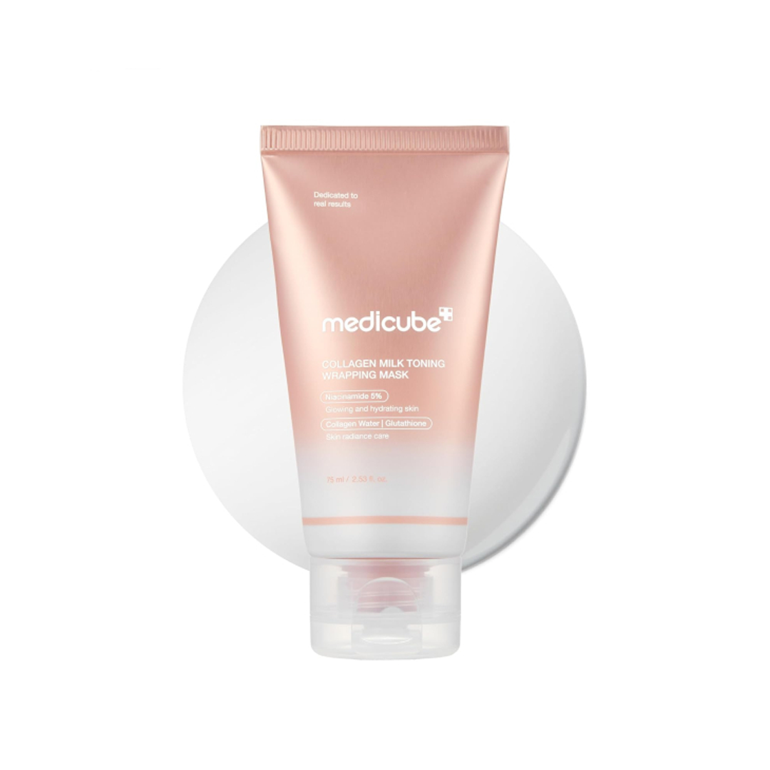 La Medicube Collagen Milk Toning Wrapping Mask es una mascarilla facial coreana tipo wrapping que ilumina, tonifica y suaviza la piel en solo unos minutos. Su fórmula combina colágeno, proteína de leche y glutatión para revitalizar el rostro, mejorar la elasticidad y devolver un brillo natural a la piel apagada o cansada.