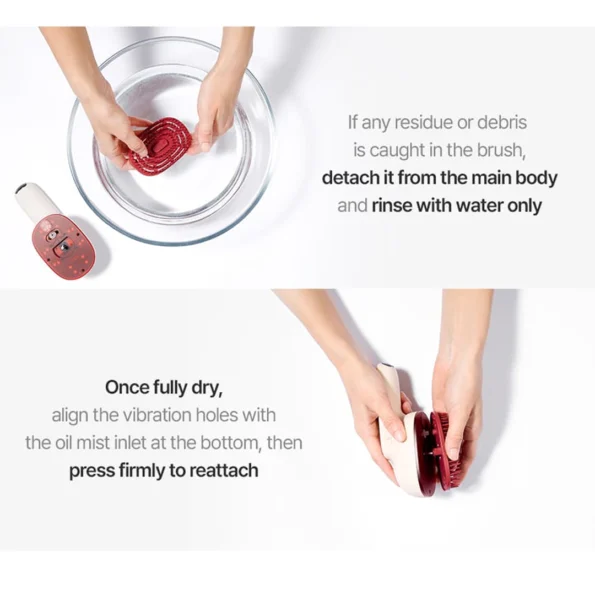 - Separá el cepillo del cuerpo principal y enjuagalo con agua para eliminar cualquier residuo de tratamiento.