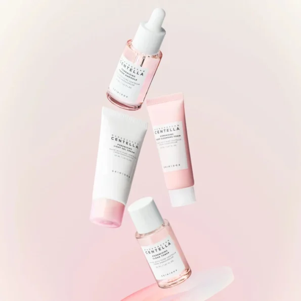 Set de 5 productos en formato mini con centella asiática: limpieza, tonificación, suero y crema en una rutina calmante y ligera para todo tipo de piel. Ideal para viaje o prueba.