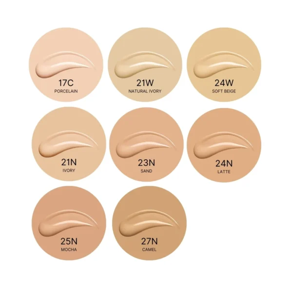 TIRTIR ofrece una amplia variedad de tonos numerados del 17 al 29, junto con subtonos diseñados para adaptarse a cada tipo de piel:
