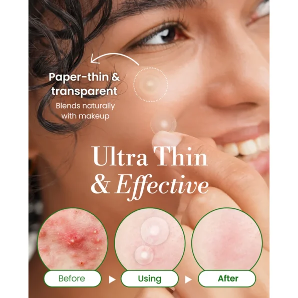 Cada parche actúa como una barrera protectora contra bacterias y contaminación externa, mientras absorbe sebo y líquidos del brote. Además, están infundidos con ingredientes calmantes para mejorar el aspecto del granito desde el primer uso. El pack incluye dos tamaños de parches, ideales para tratar distintos tipos de imperfecciones.