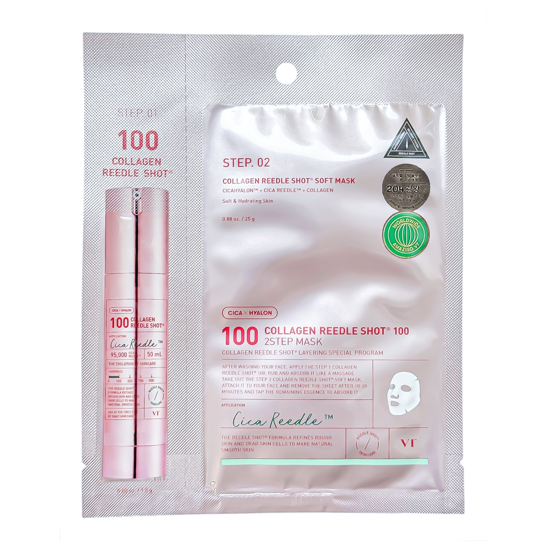 Descubrí el poder del colágeno y las microagujas vegetales con la VT Reedle Shot 100 2Step Mask. Tratamiento en dos pasos para una piel más firme, luminosa y radiante al instante.