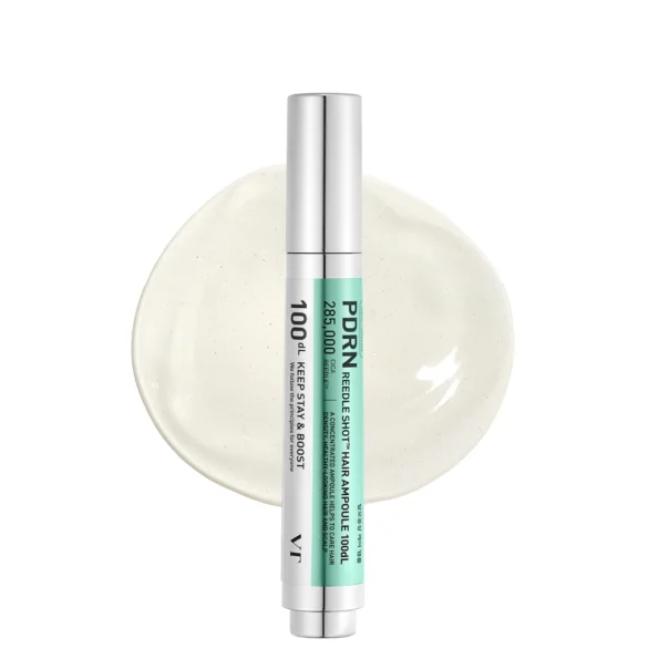 El PDRN Reedle Shot Hair Ampoule 100 DL de VT es una ampolla capilar sin enjuague formulada para nutrir, revitalizar y fortalecer el cuero cabelludo, ayudando a mejorar visiblemente la densidad y calidad del cabello. Contiene PDRN de origen vegetal, biotina, cafeína y extractos botánicos que trabajan en sinergia para estimular la microcirculación, calmar la piel y fortalecer el folículo piloso.